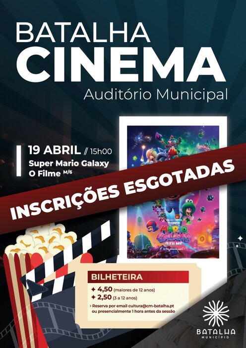 o Município da Batalha anuncia a disponibilização de sessões de cinema no seu Auditório Municipal