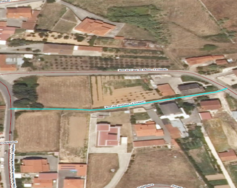 Plataforma existente em betuminoso, com largura média de 4,00m, com rede de água numa extensão aproximada de 50m e saneamento em todo o arruamento.