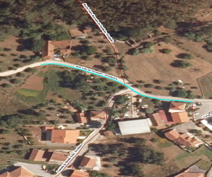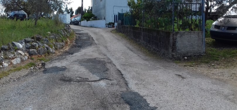 Plataforma existente com troços em betuminoso e material granular, com largura de 4,50m, com rede de água em todo o arruamento e rede de saneamento (80m).