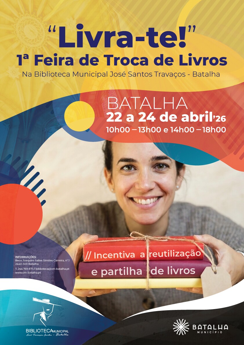 A Biblioteca Municipal José Travaços Santos organiza a 1.ª Feira de Troca de Livros – Livra-te! – a decorrer entre 22 e 24 de abril, como forma de celebrar o Dia Mundial do Livro, que se assinala anualmente no dia 23 de abril.